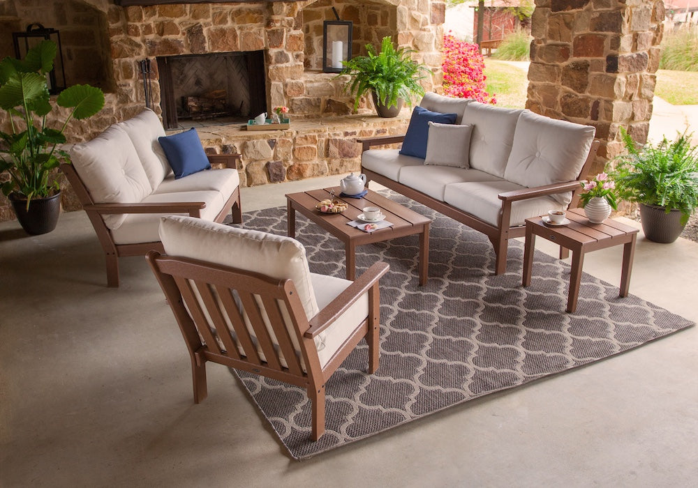 Our patio furniture will always look as good as new with very little effort. It doesn’t need to be covered or brought inside during inclement weather and cleans quickly and easily with soapy water and a soft-bristle brush.
