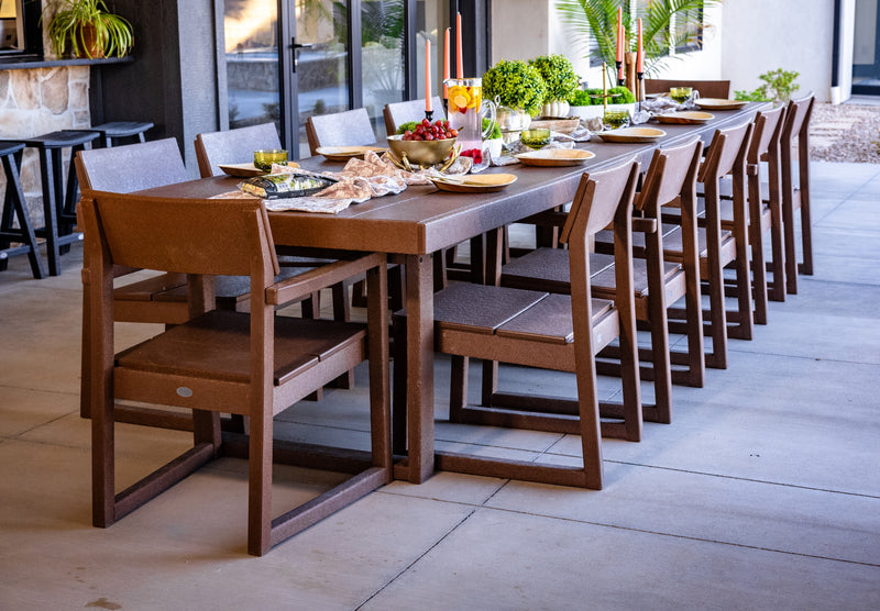 Genuine POLYWOOD lumber can do all this and more. With its exceptional durability, this material ensures long-lasting use, while its low-maintenance and stain-resistant nature simplifies cleaning and care. All in all, our furniture is perfect for any culinary adventures and endless family gatherings.