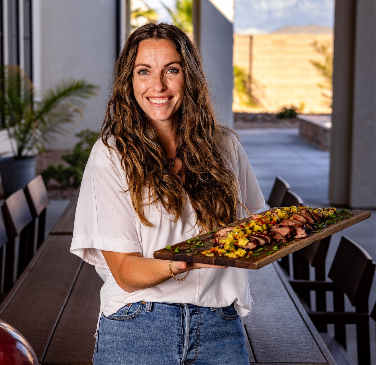 Southern Utah's arid climate lets Susie, her husband Todd, and their three kids enjoy their patio throughout the year. Given her business and busy social calendar, weatherproof furniture that withstands sauce spills and daily use is a must.