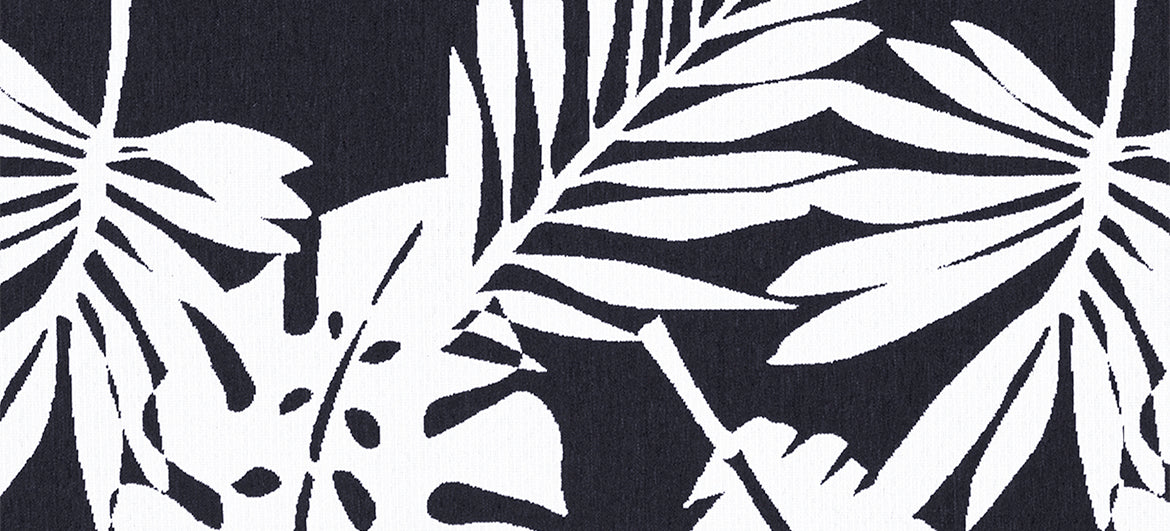Dark navy blue with white tropical leaf pattern
