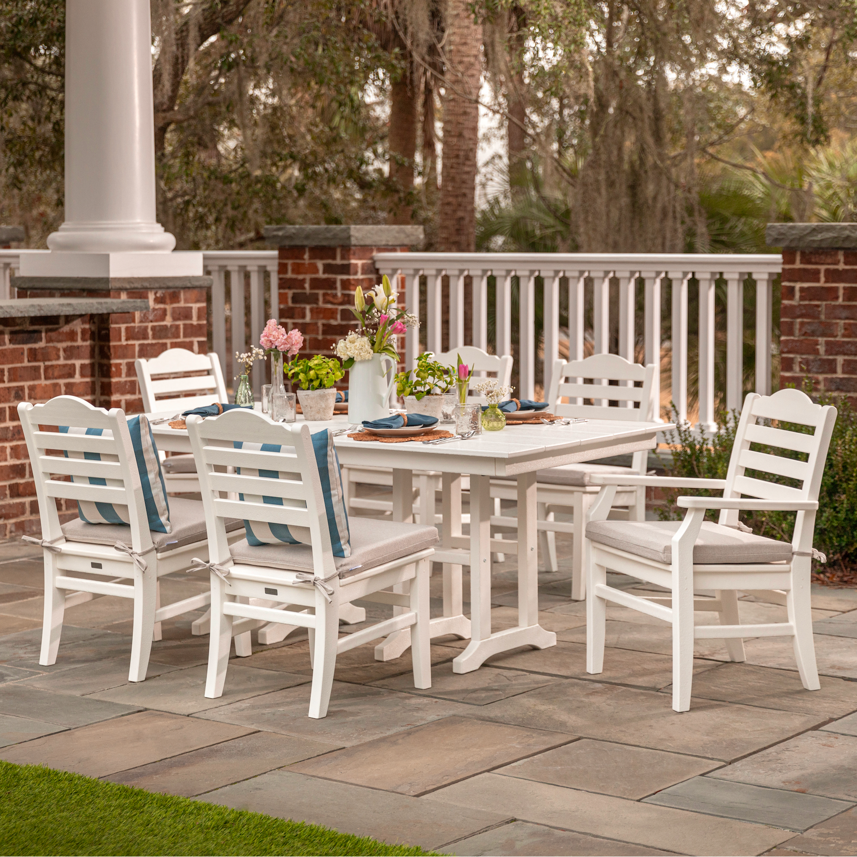 Our patio furniture will always look as good as new with very little effort. It doesn’t need to be covered or brought inside during inclement weather and cleans easily with soap and water.